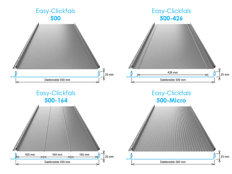 • Easy-Click 500-426: Bevarer det klassiske Clickfals-look men med bredere spejl (426 mm) for en mere rolig overflade.
