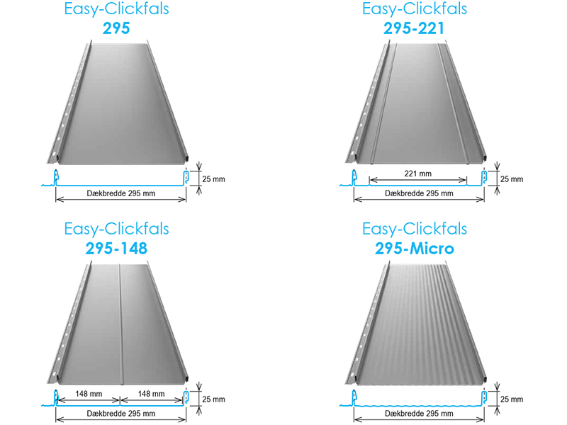 Med en dækbredde på 295 mm præsenterer Easy-Clickfals 295 et slankt og stilrent tagprofil, som skaber en harmonisk flade uden at gå på kompromis med detaljerne.